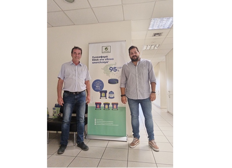 Οι δυνατότητες αξιοποίησης τρόπων για τη διεύρυνση της ανακύκλωσης σε όλα τα είδη και την αύξηση των υλικών που φθάνουν στο Κ.Δ.Α.Υ., εξετάστηκαν κατά την διάρκεια της συνάντησης που είχε ο Αντιδήμαρχος Περιβάλλοντος, Καθαριότητας, Ανακύκλωσης και Πρασίνου κ. Βασίλης Φάμελος με τον υπεύθυνο του Τμήματος ΟΤΑ της Ε.Ε.Α.Α κ. Δημήτρη Παπασωτηρίου στην Αθήνα.