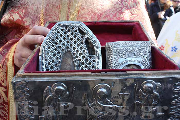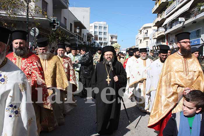 Στις 11.οο το πρωί, μετά τη Θεία Λειτουργία ακολούθησε η λιτάνευση της σεπτή εικόνας του Αγίου στην πόλη του Πύργου.