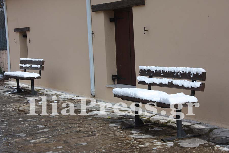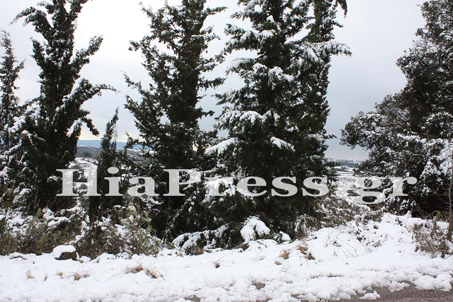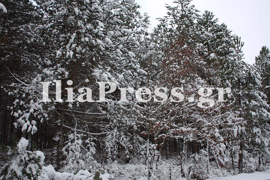 Ο φακός και η κάμερα του IliaPress έχουν καταγράψει το δάσος, τις στέγες και τις αυλές των σπιτιών σκεπασμένες από ένα παχύ στρώμα χιονιού.