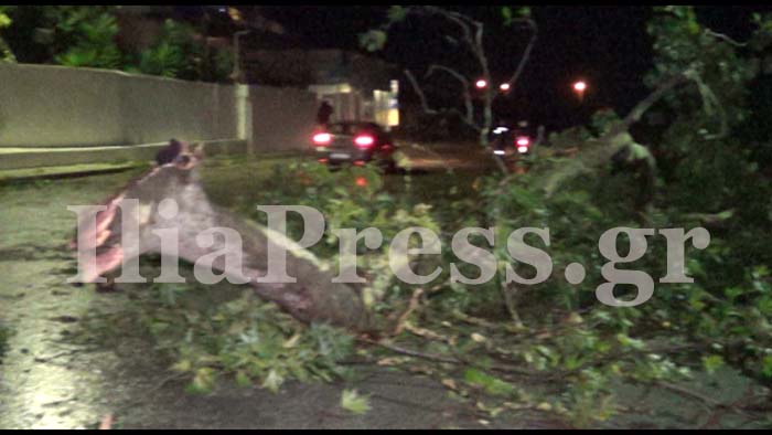 έσπασε τεράστιες κλάρες από τα υπεραιωνόβια δέντρα και τα σκόρπισε στο δρόμο, φράζοντας και εκεί την κυκλοφορία για αρκετή ώρα.