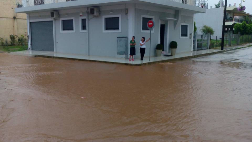 κάμπου η δυνατή νεροποντή αρχίζει και δημιουργεί προβλήματα.