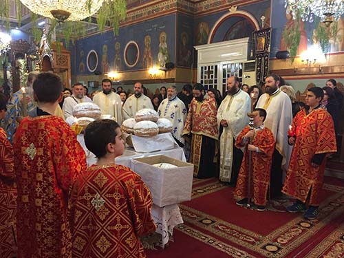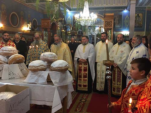 Την παραμονή της εορτής τελέσθηκε ο Μέγας Πανηγυρικός Εσπερινός μετά αρτοκλασιών, προεξάρχοντος του Αιδεσιμολογιοτάτου Πρωτοπρεσβυτέρου π. Ηλία Παπαγγελή, Γενικού Αρχιερατικού Επιτρόπου της Ιεράς Μητροπόλεώς μας, ο οποίος και ορθοτόμησε τον Θείον Λόγον, αναλύοντας με την γλαφυρότητα, την απλότητα που τον διακρίνει καθώς επίσης και με την Θεολογική του κατάρτιση, τις μεγάλες εκείνες αρετές του εορταζομένου Αγίου και τους Ιερούς αγώνες του, για την Ορθοδοξία, καλώντας παράλληλα τους φιλακόλουθους Χριστιανούς της δραστήριας αυτής Ενορίας και προσκυνητές του Αγίου, οι οποίοι είχαν κατακλύσει τον Ιερό Ναό όχι μόνον να τον τιμούν πανευλαβώς, αλλά τον μιμούνται και να τον έχουν ως πρότυπό τους.
