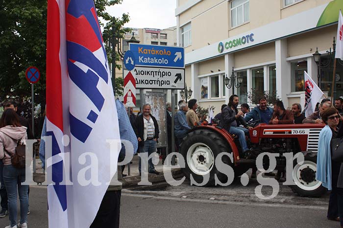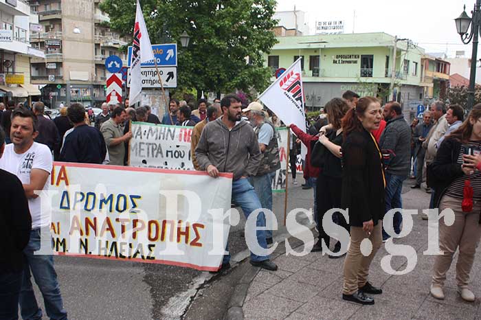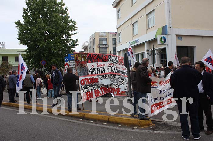 Μετά τις ομιλίες, τα μέλη του ΠΑΜΕ, αγρότες, εργαζόμενοι, συνταξιούχοι, άνεργοι και επαγγελματίες έκαναν πορεία στους δρόμους του Πύργου.
