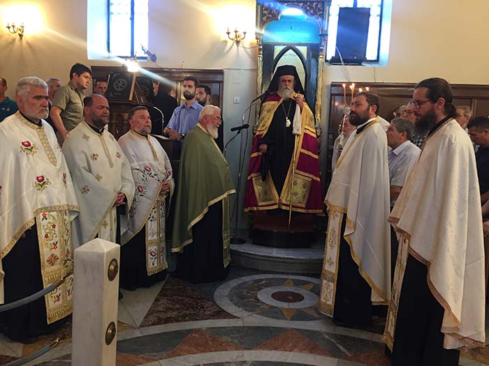 Την κυρία ημέρα της εορτής, τελέσθηκε η Ιερή ακολουθία του Όρθρου μετ’ αρτοκλασιών και εν συνεχεία η Πανηγυρική Θεία Λειτουργία υπό του Ιεροκήρυκος της Ιεράς Μητροπόλεώς μας, Πανοσιολογιωτάτου Αρχιμανδρίτου π. Φιλάρετου Σπανόπουλου, ο βοηθουμένου υπό των Αιδεσιμοτάτων π. Χαραλάμπους Αθανασοπούλου, π. Βασιλείου Λαγκαδινού, π. Παναγιώτου Δημητρακοπούλου και π. Θεοδώρου Λαμπροπούλου.