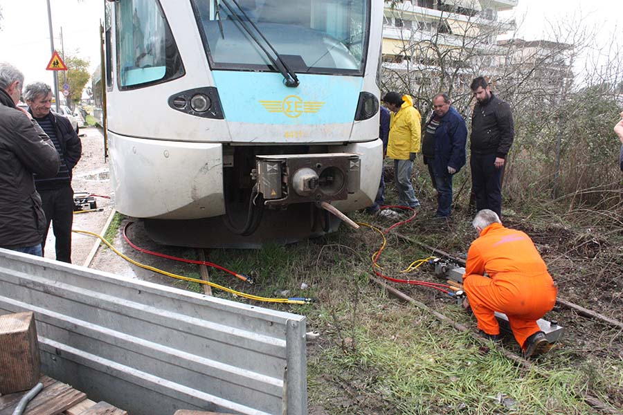 Η κίνηση έχει κοπεί, καθώς οι γραμμές βρίσκονται κάθετα στον δρόμο Έλληνος Στρατιώτου.