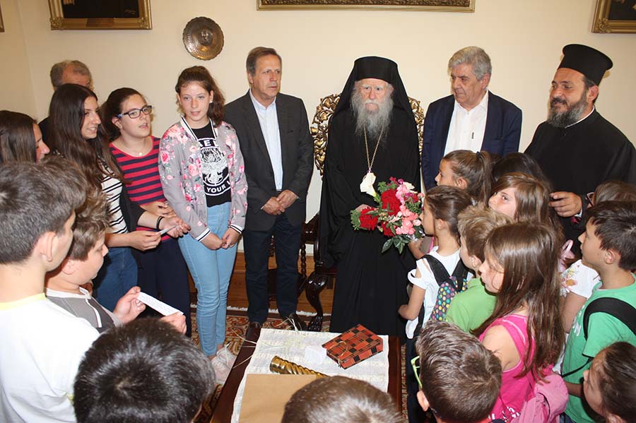 Στην συνέχεια μετέβη στο Μητροπολιτικό Μέγαρο, όπου μέχρι αργά το μεσημέρι εδέχθη τις θερμές ευχές των τοπικών Πολιτικών και Στρατιωτικών αρχών, του Ιερού Κλήρου, των Μοναστικών αδελφοτήτων, των εκπροσώπων Κοινωνικών φορέων και Συλλόγων, καθώς επίσης και του Χριστεπωνύμου πληρώματος της Ιεράς Μητροπόλεώς μας.
