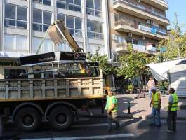 Μετά την απομάκρυνση των περιπτέρων που βρίσκονταν μπροστά από την Τράπεζα της Ελλάδος και την Εθνική Τράπεζα, είναι το τρίτο κατά σειρά περίπτερο που απομακρύνεται.