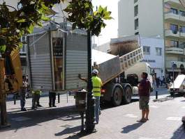 Σήμερα υπό την επίβλεψη της Προϊσταμένης της Πολιτικής Προστασίας κας Κικής Διονυσοπούλου και του προσωπικού της Τεχνικής Υπηρεσίας πραγματοποιήθηκε η απομάκρυνση του κουβουκλίου του περιπτέρου που βρίσκεται στην πλατεία Ηρώων.