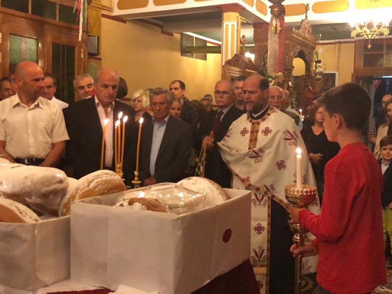 Την παραμονή της εορτής τελέστηκε ο Μέγας Αρχιερατικός Πανηγυρικός Εσπερινός μετ΄αρτοκλασιών και Θείου Κηρύγματος, υπό του Θεοφιλεστάτου Επισκόπου Ωλένης κ.κ. Αθανασίου, πλαισιουμένου από τους Αιδ. π. Νικόλαο Κατσήδημα, π. Δημήτριο Αναγνωστόπουλο και τον οικείο Εφημέριο π. Αθανάσιο Αγγελόπουλο.
