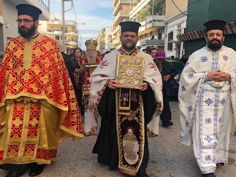 Μετά το τέλος της Αρχιερατικής Ευχαριστιακής Συνάξεως, προς τιμήν του εορταζομένου Αγίου και εν μέσω πλήθους πιστών, καθώς επίσης μαθητών και μαθητριών των Σχολείων της πόλεως στους κεντρικούς δρόμους του Πύργου, έλαβε χώρα, η Λιτάνευσις της Ιερής Εικόνας αλλά και του Ιερού Λειψάνου (αποτμήματος της χειρός του Αγίου Διονυσίου), το οποίο φυλάσσεται ως πολύτιμος θησαυρός προς ευλογία και αγιασμό, των ευλαβών κατοίκων του Πύργου, από τις αρχές του 20ου αιώνα μέχρι και σήμερα εις το Ιερό Μετόχιον Αυτού.
