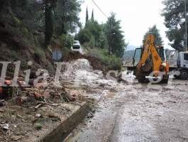 Στον δρόμο Μακρίσια - Κρέστενα, η συνεχής νεροποντή παρέσυρε βράχους και χώματα από το βουνό. Συνεργεία του Δήμου χθες το πρωί καθάριζαν και άνοιγαν τον δρόμο.