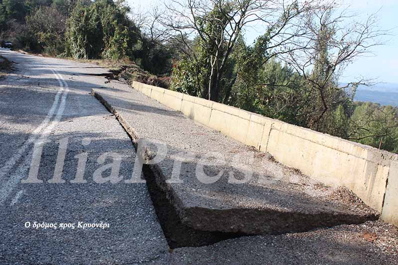 Το Κρυονέρι αποκλείστηκε. Ο ασφαλτοστρωμένος δρόμος διαλύθηκε, έσπασε σε πολλά κομμάτια.