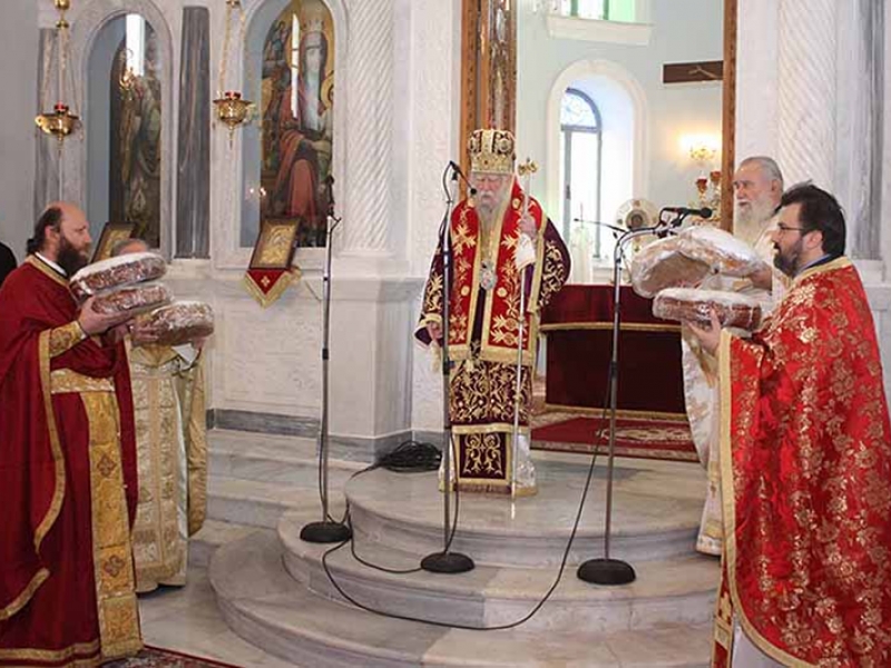 Την Αρχιερατική Θεία Λειτουργία μετ’ αρτοκλασιών, τέλεσε ο Σεβασμιώτατος Μητροπολίτης μας κ.κ. Γερμανός, συνεπικουρούμενος από τον Γενικό Αρχιερατικό Επίτροπο της Ιεράς Μητροπόλεώς μας, π. Ηλία Παπαγγελή, καθώς επίσης και τους Αιδ. π. Κωνσταντίνο Παπαδημητρίου, π. Ιωάννη Διαμαντόπουλο και π. Γεώργιο Αναγνωστόπουλο. Τον πανηγυρικό της ημέρας εκφώνησε εξαίσια ο κ. Σταμάτιος Πορτελάνος, Επίκουρος Καθηγητής εις την έδρα των Παιδαγωγικών του Πανεπιστημίου Ιωαννίνων.