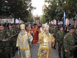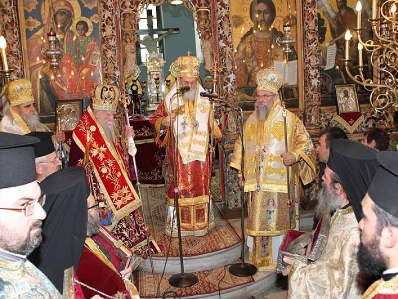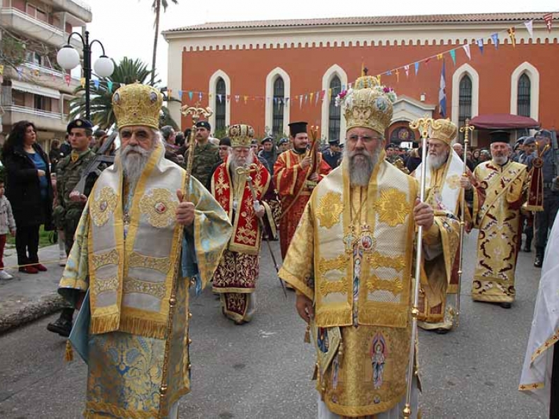 Την Κυριώνυμο ημέρα της εορτής κατά το Αρχιερατικό Πανηγυρικό Συλλείτουργο, προεξήρχε ο Σεβασμιώτατος Μητροπολίτης Κορίνθου κ.κ. Διονύσιος, ορθοτομώντας γλαφυρά και σαγηνευτικά τον Θείον Λόγον, με την πλούσια Θεολογική και Πατερική γνώση που τον διακατέχει, πλαισιούμενος από τον Σεβασμιώτατο Μητροπολίτη μας κ.κ. Γερμανόν, καθώς επίσης τους Θεοφιλεστάτους Επισκόπους Ανδρούσης κ.κ. Κωνστάντιον και Ωλένης κ.κ. Αθανάσιον.