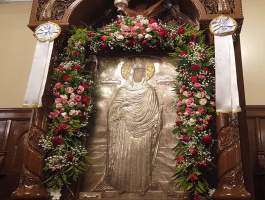 Οι λαμπρές Θρησκευτικές εκδηλώσεις με τις ευλογίες του Σεπτού μας Ποιμενάρχου κ.κ. Γερμανού, έλαβαν χώρα στον ομώνυμο περικαλλή Ιερό Ναό της εορταζομένης Αγίας και άρχισαν την παραμονή της εορτής, με την τέλεση του Αναστάσιμου Πανηγυρικού Αρχιερατικού Εσπερινού μετ’ αρτοκλασιών υπό του Θεοφιλεστάτου Επισκόπου Ωλένης κ.κ. Αθανασίου, ο οποίος πλαισιωνόταν από τους Αιδ. π. Κωνσταντίνο Παπαδημητρίου, π. Παντελεήμων Παπαηλιού, π. Νικόλαο Κατσηδήμα, π. Αυγερινό Τσουκαλά, καθώς επίσης από τους οικείους Εφημερίους π. Χαράλαμπο Αθανασόπουλο και π. Βασίλειο Λαγκαδινό.