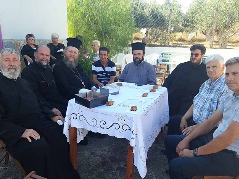 Στον Μέγα Πανηγυρικό Αρχιερατικό Εσπερινό, πλαισιούμενος από τους Αιδεσ. π. Παντελεήμων Παπαηλιού, π. Γεώργιο Τούμπα, π. Αυγερινό Τσουκαλά, π. Θεόδωρο Γκοτσόπουλο και τον οικείο Εφημέριο π. Νικόλαο Κατσηδήμα, χοροστάτησε ο Σεβασμιώτατος Μητροπολίτης μας κ.κ. Γερμανός, ευλογώντας επίσης και τους προσφερθέντες άρτους.