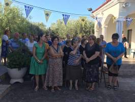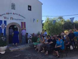Την Πανηγυρική Θεία Λειτουργία, ευλογία του Σεβασμιωτάτου Μητροπολίτου μας κ.κ. Γερμανού, τέλεσε ο Αιδεσιμολογιότατος π. Θεμιστοκλής Χριστοδούλου, προϊστάμενος του Ιερού Ναού Αγίου Ελευθερίου Αχαρνών, συμπαραστατούμενος από τους Αιδεσ. π. Γεώργιο Τούμπα, π. Αυγερινό Τσουκαλά, τον οικείο Εφημέριο και τον ευλαβέστατο Ιεροδιάκονο π. Γεώργιο Γούτσο.