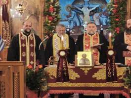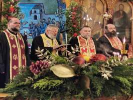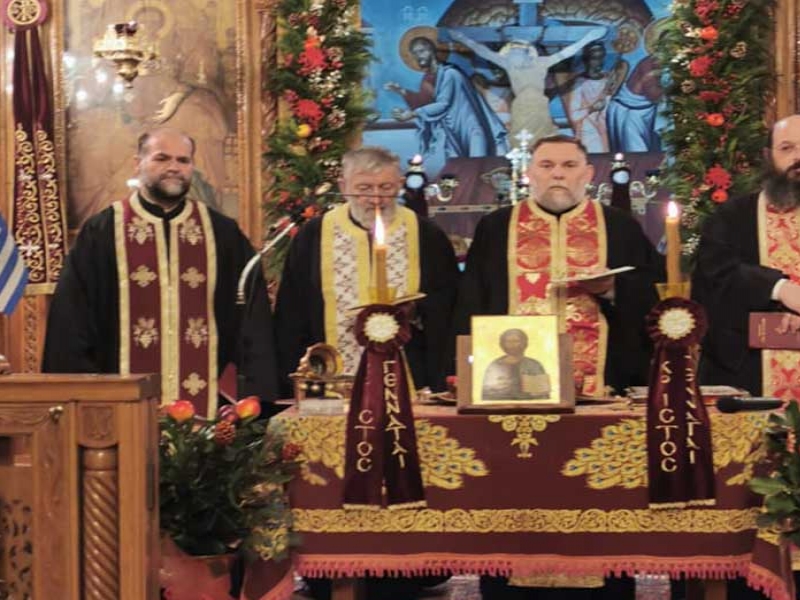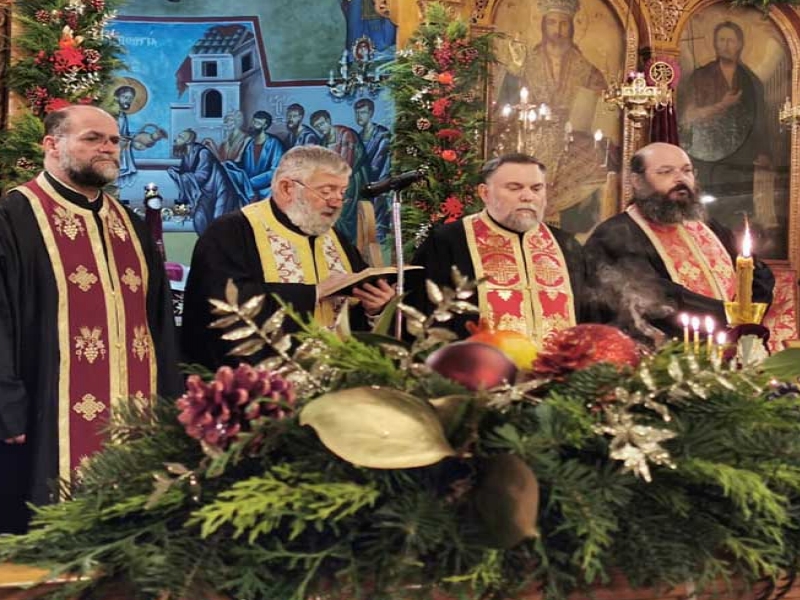 Το Ιερό Μυστήριο τελέσθηκε από τους Αιδεσιμοτάτους π. Γρηγόριο Πάπαρη, π. Γεώργιο Τούμπα, π. Παναγιώτη Κλουκίνα και τον οικείο Εφημέριο π. Νικόλαο Κατσηδήμα, ενώ για την ενσάρκωση και ενανθρώπιση του Υιού και Λόγου του Θεού και πως πρέπει ως Έλληνες Ορθόδοξοι Χριστιανοί να εορτάζουμε τα Χριστούγεννα, ομίλησε γλαφυρά και θεολογικά εμπνευσμένα, ο Καθηγητής Θεολόγος κ. Παναγιώτης Κουής.