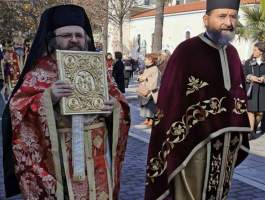 Κατά τον Μέγα Πανηγυρικό Αρχιερατικό Εσπερινό χοροστάτησε ο Θεοφιλέστατος Επίσκοπος Θαυμακού κ.κ. Ιάκωβος ορθοτομώντας παράλληλα επίκαιρα και γλαφυρά τον Θείον Λόγον, συγχοροστατούντων δε του Σεβασμιωτάτου Μητροπολίτου Καισαριανής, Βύρωνος και Υμηττού κ.κ. Δανιήλ και του Θεοφιλεστάτου Επισκόπου Ωλένης κ.κ. Αθανασίου, πλαισιουμένων από χορεία Ιερέων.