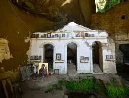 Εκεί όμως βρήκαν μόνο μία εικόνα της Παναγίας να κρατά ένα βρέφος. Εκεί λοιπόν, που σμίγουν δυο βουνά, στο φυσικό κοίλωμα δυο σπηλαίων, χτίστηκε η μονή και για πολλά χρόνια αποτελούσε μοναστικό κέντρο.