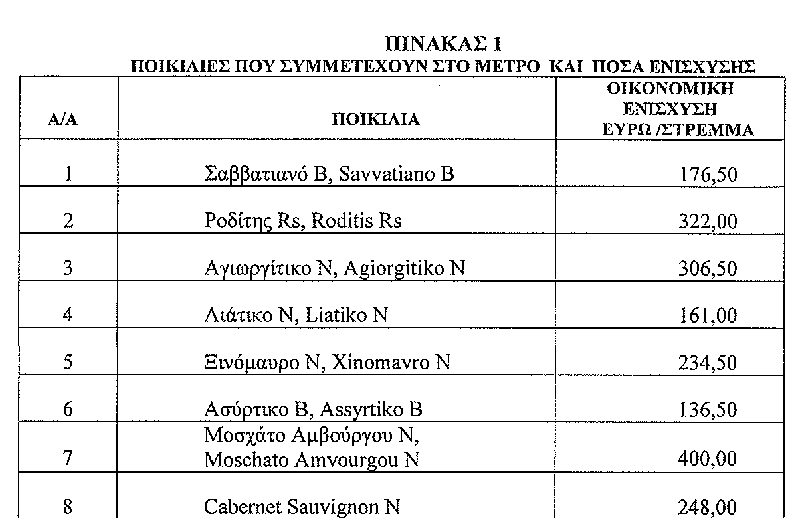 Η ελάχιστη έκταση του αμπελοτεμαχίου να είναι 1 στρέμμα και ο παραγωγός να μην έχει παράνομες εκτάσεις.