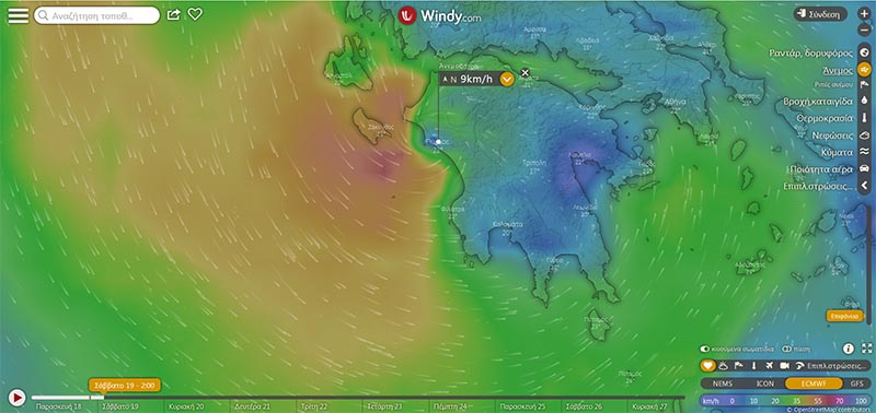 Σύμφωνα με το windy.com, το μάτι του κυκλώνα θα είναι πάνω από τον Πύργο στις 23:00 απόψε το βράδυ