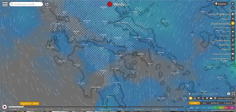Πατώντας στο σύνδεσμο μεταφέρεστε στο Windy.com κι εκεί μπορείτε να παρακολουθήσετε το φαινόμενο σε όλη του την εξέλιξη.