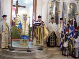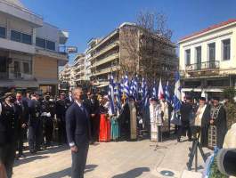 Στον Μητροπολιτικό Ιερό Ναό Αγίου Νικολάου Πύργου, ο Σεβασμιώτατος Μητροπολίτης μας κ.κ. Γερμανός, τέλεσε την Αρχιερατική πανηγυρική Θεία Λειτουργία για την Θεομητορική εορτή του Ευαγγελισμού της Θεοτόκου, συνεπικουρούμενος από τους Ιερείς του Ναού αλλά και της πόλεως. Ακολούθησε η καθιερωμένη επίσημη Δοξολογία, παρουσία του εκπροσώπου του Πρωθυπουργού και της Κυβέρνησης Υφυπουργού Κλιματικής Κρίσης και Πολιτικής Προστασίας, Ευάγγελου Τουρνά, της Βουλευτού της Ν.Δ Διονυσίας – Θεοδώρας Αυγερινοπούλου, των Βουλευτών του ΣΥΡΙΖΑ Διονύση Καλαματιανού και του ΚΙΝΑΛ Μιχάλη Κατρίνη, του Αντιπεριφερειάρχη Ηλείας Βασίλη Γιαννόπουλου, του Αντιπεριφερειάρχη Αθλητισμού, Εθελοντισμού και Ολυμπισμού Δημήτρη Νικολακόπουλου του Δημάρχου Πύργου Παναγιώτη Αντωνακόπουλου, Αντιδημάρχων και εκπροσώπων των Σωμάτων Ασφαλείας και των Ενόπλων Δυνάμεων. Μετά τη δοξολογία εκφωνήθηκε ο πανηγυρικός της ημέρας εντός του Ιερού Ναού από την Πρόεδρο του Λυκείου Ελληνίδων Πύργου κ. Αικατερίνη Παρασκευοπούλου Καθηγήτρια Φιλολογίας. Ακολούθησε επιμνημόσυνη δέηση στο άγαλμα του Κολοκοτρώνη και κατάθεση Στεφάνων, τήρηση ενός λεπτού σιγής στη μνήμη των ενδόξων νεκρών και ηρωϊκών αγωνιστών της Εθνικής Παλιγγενεσίας. Οι εκδηλώσεις για την 201η επέτειο της 25ης Μαρτίου του 1821, κορυφώθηκαν με την παρέλαση στην οδό Μανωλοπούλου, όπου μαθητές όλων των Σχολικών βαθμίδων, Πολιτιστικοί σύλλογοι και Ένοπλες Δυνάμεις τίμησαν τους ήρωες της Ελληνικής Επανάστασης.