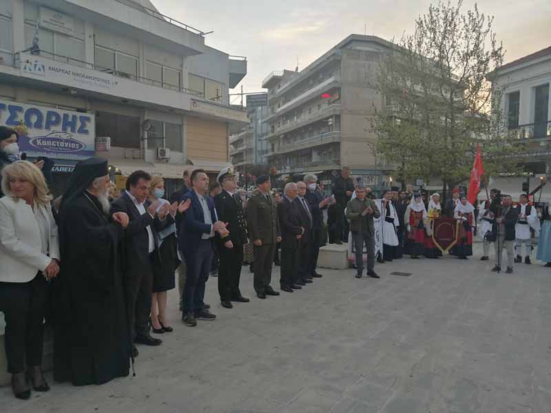 Το λόγο αμέσως μετά πήρε ο δήμαρχος Πύργου Παναγιώτης Αντωνακόπουλος, ο οποίος τόνισε: «Όπως όλοι έχουν μια ταυτότητα με το όνομά τους, έτσι και κάθε πόλη έχει τα ισχυρά στοιχεία ταυτοποίησής της όπως ο Μητροπολιτικός Ναός της, οι ήρωές της, οι μεγάλοι άνθρωποι των γραμμάτων και των τεχνών, οι αθλητές….Αυτή η πόλη ταυτοποιείται με την 3η Απριλίου του 1821 ως ημέρα μάχης, ισχυρής αντίστασης και νίκης απέναντι στον κατακτητή, στους Τουρκαλβανούς που έκαναν μεγάλες ζημιές αλλά τράπηκαν σε φυγή. Ήταν η πρώτη μάχη μετά τη σύσταση της Ελληνικής Επανάστασης. Αυτό το γεγονός έχει αδικηθεί στις σελίδες της ιστορίας και είναι χρέος μας να το αποκαταστήσουμε. Ήδη έχουμε ξεκινήσει να οργανώσουμε μια ημερίδα συνάντησης Ιστορικών και να κηρύξουμε την 3η Απριλίου ως επίσημη ημέρα τοπικής εορτής στην πόλη μας. Επίσης ψηφίστηκε πρόσφατα από το Δημοτικό Συμβούλιο η στέγαση ενός Ιστορικού Μουσείου της πόλης και προς αυτή την κατεύθυνση κινούμαστε με σταθερά βήματα….».