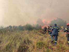 40 πυροσβέστες με 16 οχήματα και 3 ομάδες πεζοπόρου δίνουν μάχη με τις φλόγες. Στη προσπάθεια συνδράμουν και εναέρια μέσα.