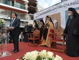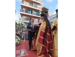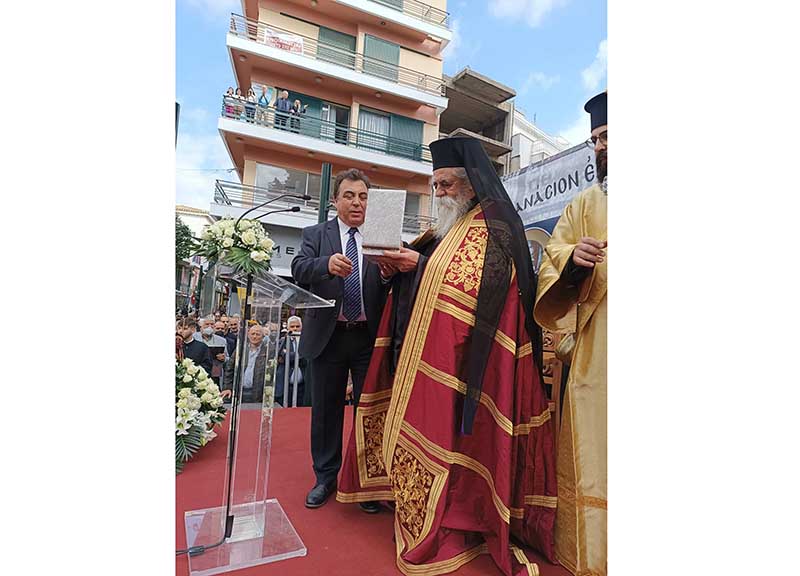 Στο χαιρετισμό του ο Δήμαρχος Πύργου αναφέρθηκε αρχικά στον τοποτηρητή της Ι.Μ. Ηλείας και πρώην Μητροπολίτη Ηλείας κ.κ. Γερμανό, λέγοντας: «Είναι τιμή μας, σαν λαός της Ηλείας που τόσα χρόνια σας είχαμε πνευματικό μας ηγέτη. Πάντα θα σας έχουμε στην καρδιά μας και στο μυαλό μας γιατί παραμείνατε στο κοινό ως παράδειγμα προσφοράς της Εκκλησίας και της διοίκησης» και συνέχισε: