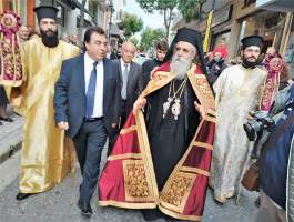 - Σε ένδειξη τιμής και σεβασμού ο κ. Αντωνακόπουλος πρόσφερε στον Μητροπολίτη Ηλείας το Αρχιερατικό εγκόλπιον, καταλήγοντας: «Σας δίνουμε τη νενομισμένη διαβεβαίωση του κόσμου ότι πιστεύει σε σας, κι όπως θα σας ακουμπά αυτό το εγκόλπιο στο μέρος της καρδιάς, θα σας ακουμπά ο λαός της Ηλείας».