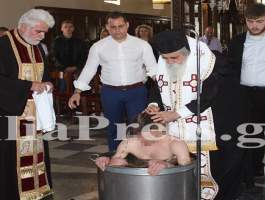 Ο νονός του κ. Βασίλης Γιαννακόπουλος, επιχειρηματίας στον Πύργο, στάθηκε δίπλα του, όχι μόνο στο Μυστήριο, αλλά και την προσπάθειά του να φτάσει στον Ναό, στην ιερή στιγμή της Βάπτισής του.