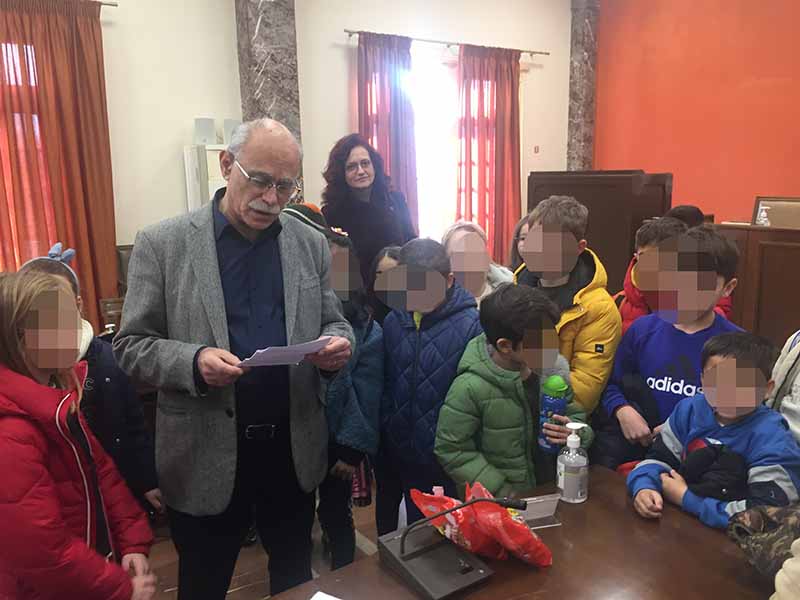 Ο Δήμαρχος Πύργου ξενάγησε τους μικρούς επισκέπτες στους χώρους του Δημαρχείου και τους φιλοξένησε στο γραφείο του Δημάρχου και την αίθουσα του Δημοτικού Συμβουλίου.