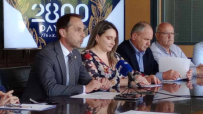 Τέλος, ο Δήμαρχος κάλεσε τους πολίτες να συμμετέχουν και να τιμήσουν με την παρουσία τους τις επετειακές αυτές εκδηλώσεις και ευχαρίστησε όλους τους φορείς που συνέβαλαν στην δημιουργία του προγράμματος δράσεων για τον εορτασμό της Τελετής Αφής και των 2800 χρόνων, οι οποίες μάλιστα θα συνεχιστούν καθ’ όλη την διάρκεια του 2024 με διεθνείς πρωτοβουλίες της Ολυμπίας αναδεικνύοντας την Εθνική διάσταση της ιστορικότητας του Τόπου μας.