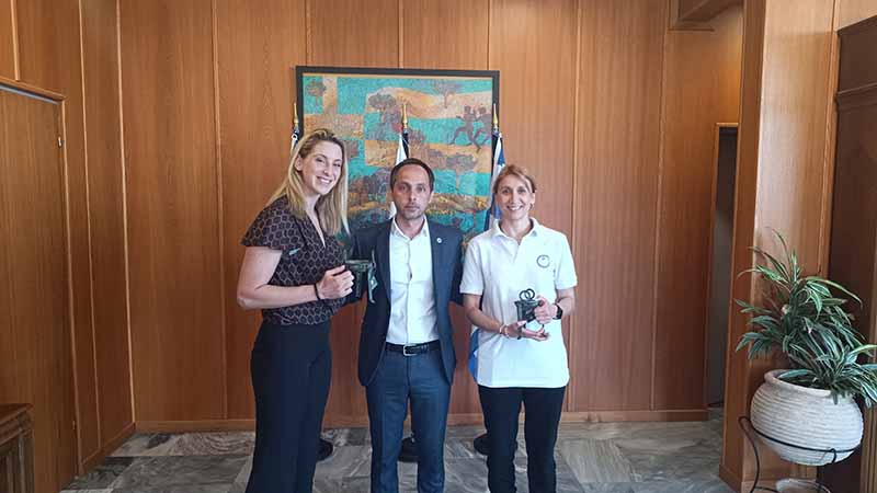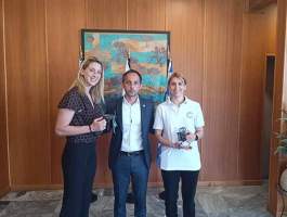 Σημειώνεται ότι ο Δήμαρχος συνεχάρη τις πρωταθλήτριες για την παρουσία τους σήμερα εδώ, στην γενέτειρα του Ολυμπισμού, και για την επιθυμία τους να διδάξουν στα παιδιά τα μυστικά του αθλήματός τους, ενώ αργότερα αντάλλαξαν δώρα και ευχές στο γραφείο του.