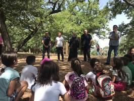 Οι δράσεις συνεχίστηκαν στην Δημοτική Κοινότητα της Αγίας Τριάδας, στον χώρο αναψυχής στο Δάσος Κάπελης. Ο κ. Παναγιωτάρας ανέπτυξε το θέμα της Επίδρασης της Κλιματικής Αλλαγής στα Οικοσυστήματα και της Άθλησης για όλους σε Φυσικό Περιβάλλον.