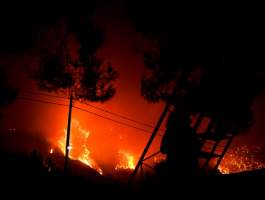 Η φωτιά που πέρασε από την Αχαΐα στα χωριά της Πηνείας φαίνεται να παραμένει άκρως απειλητική καθώς κινείται σαρωτικά σε ένα τεράστιο μέτωπο.