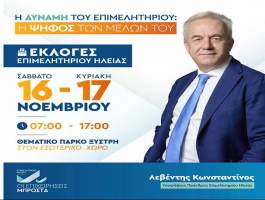 Σε εξέλιξη βρίσκονται οι επιμελητηριακές εκλογές για το Επιμελητήριο Ηλείας έως την Κυριακή 17 Νοεμβρίου, ώρα 17:12 μμ