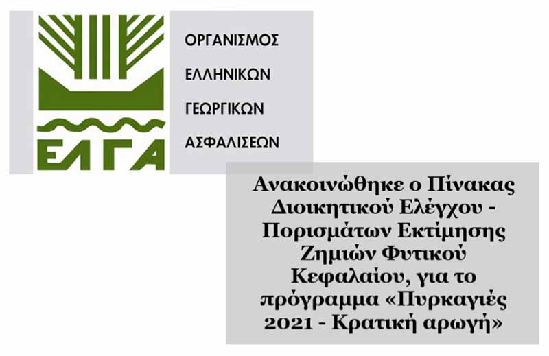 Τον πίνακα διοικητικού ελέγχου με τα πορίσματα εκτίμησης των ζημιών φυτικού κεφαλαίου για το πρόγραμμα «Πυρκαγιές 2021 – Κρατική αρωγή» απέστειλε ο ΕΛΓΑ στον Δήμο Αρχαίας Ολυμπίας. Σε αυτόν περιλαμβάνονται τα αποτελέσματα του διοικητικού ελέγχου των παραγωγών που υπέβαλαν αίτηση χορήγηση ενίσχυσης, καθώς επίσης και τα πορίσματα εκτίμησης ζημιάς των δηλωθέντων αγροτεμαχίων.