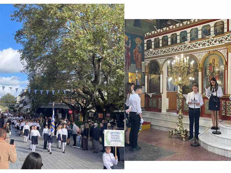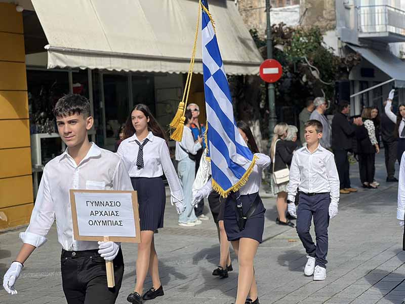 Ιδιαίτερη συγκίνηση προκάλεσαν οι μαθητικές παρελάσεις, όπου τα παιδιά τίμησαν με υπερηφάνεια τη μνήμη όσων αγωνίστηκαν για την ελευθερία της πατρίδας. Παρόντες ήταν ο Δήμαρχος Αρχαίας Ολυμπίας, Αριστείδης Παναγιωτόπουλος, ο Προέδρος του Δημοτικού Συμβουλίου, Γιώργος Αηδόνης , οι Δημοτικοί Σύμβουλοι της μείζονος μειοψηφίας Χάρης Σπηλιόπουλος και Νίκος Μαρούντας και ο Αντιπεριφερειάρχης Εξυπηρέτησης του Πολίτη και Ψηφιακής Διακυβέρνησης, Θεόδωρος Βασιλόπουλος.