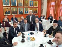 Πριν την καθιερωμένη δεξίωση στο Λάτσειο Δημοτικό Μέγαρο, ο κ. Καννής απένειμε αναμνηστική πλακέτα με το έμβλημα του Δήμου στον εκπρόσωπο της Κυβέρνησης, Γενικό Γραμματέα Διεθνών Οικονομικών Σχέσεων & Εξωστρέφειας Υπουργείου Εξωτερικών, Δημήτρη Σκάλκο.