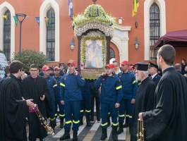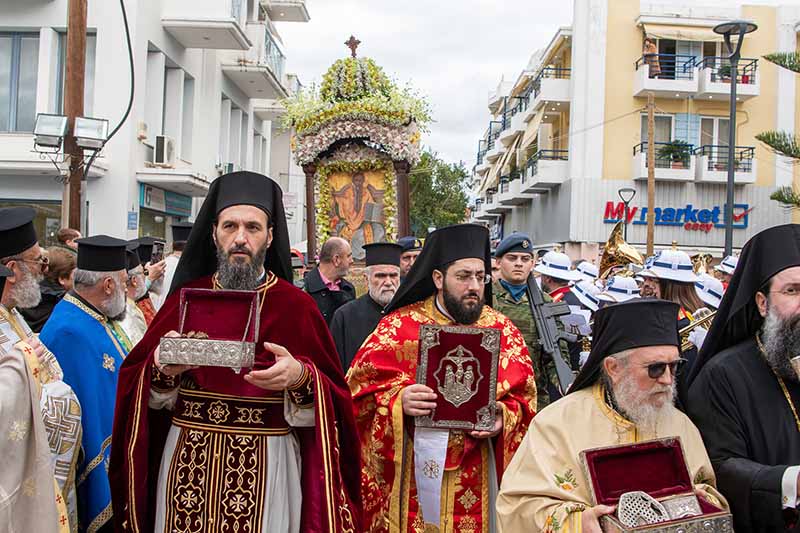 Από νωρίς το πρωί, πλήθος πιστών κατέκλυσε τον ιερό ναό Αγίας Κυριακής, συμμετέχοντας στις θρησκευτικές εκδηλώσεις, με πολυαρχιερατική Θεία Λειτουργία στην οποία συμμετείχαν οι Σεβασμιότατοι Μητροπολίτες Πατρών κ.κ. Χρυσόστομος, Μαντινείας και Κυνουρίας κ.κ. Επιφάνιος, Ηλείας κ.κ. Αθανάσιος καθώς και οι Θεοφιλέστατοι Επίσκοποι Ιππώνος κ.κ. Στέφανος και Αχελώου κ.κ. Νήφων.