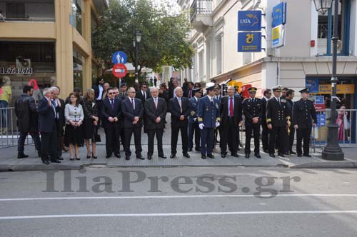 Οι εκπαιδευτικοί της ΕΛΜΕ Ηλείας έκαναν διαμαρτυρία με πανό στην κεντρική πλατεία του Πύργου. Οι πολίτες που θέλησαν να παρευρεθούν ως θεατές στην παρέλαση των μαθητών την παρακολούθησαν πίσω από τα κιγκλιδώματα.