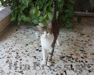 Τον πήραμε, τον βάλαμε σε δροσερό μέρος και τον ξεδιψάσαμε με κρύο νεράκι. Το IliaPress υιοθέτησε το γλυκύτατο γατάκι και το ονόμασε Μπούκο.