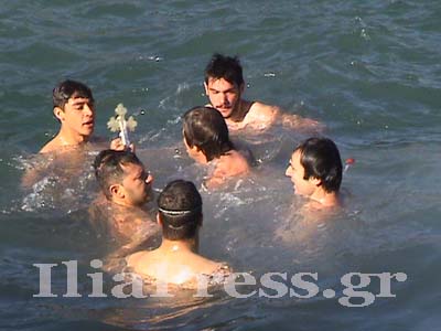 Έξι κολυμβητές βούτηξαν για να πιάσουν τον Σταυρό, στα παγωμένα νερά του Κατακόλου.