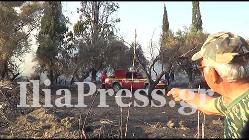 Αμέσως ειδοποιήθηκε η Πυροσβεστική Πύργου και σε λίγα λεπτά 5 οχήματα με 10 πυροσβέστες κατέφθασαν στο σημείο και άρχισε το έργο κατάσβεσης.
