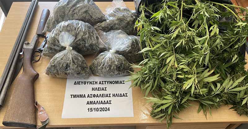 Συνελήφθη, χθες το μεσημέρι, στην Αμαλιάδα, από αστυνομικούς του Τμήματος Ασφάλειας Ήλιδας, ένας ημεδαπός άνδρας, σε βάρος του οποίου σχηματίσθηκε δικογραφία για καλλιέργεια και κατοχή ναρκωτικών και παράβαση του νόμου περί όπλων.