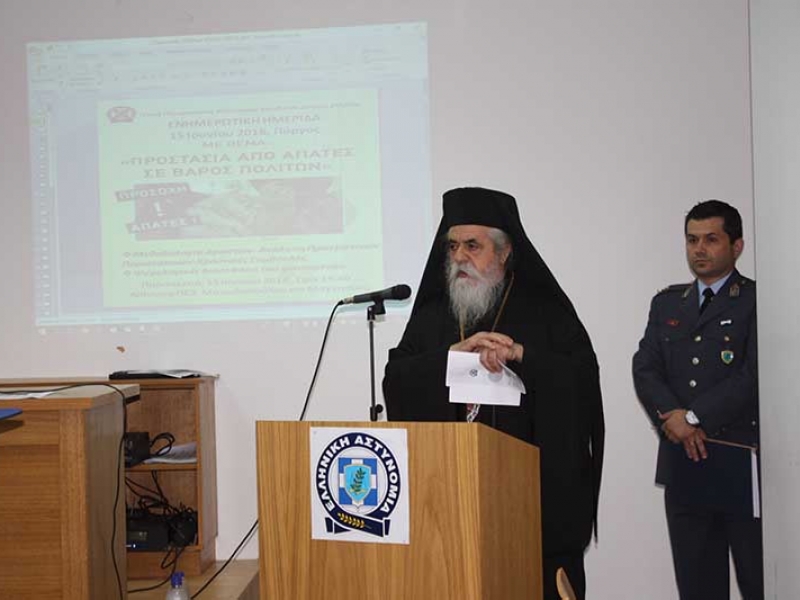Με ιδιαίτερη επιτυχία, διοργανώθηκε και πραγματοποιήθηκε, χθες 15 Ιουνίου 2018, ενημερωτική ημερίδα, από τη Γενική Περιφερειακή Αστυνομική Διεύθυνση Δυτικής Ελλάδας, στην αίθουσα της Περιφερειακής Ένωσης Δήμων στον Πύργο, με θέμα : «Προστασία από απάτες σε βάρος πολιτών ».