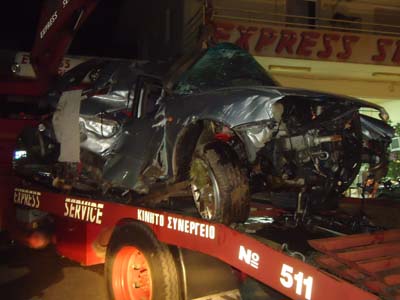 Η σύγκρουση ήταν σφοδρή και το αυτοκίνητο μετατράπηκε σε μια άμορφη μάζα σιδηρικών. Οι άντρες της Πυροσβεστικής, που έφτασαν μέσα σε ελάχιστα λεπτά, απεγκλώβισαν τον άτυχο Σωτήρη, και ασθενοφόρο τον μετάφερε στο Νοσοκομείο Πύργου.